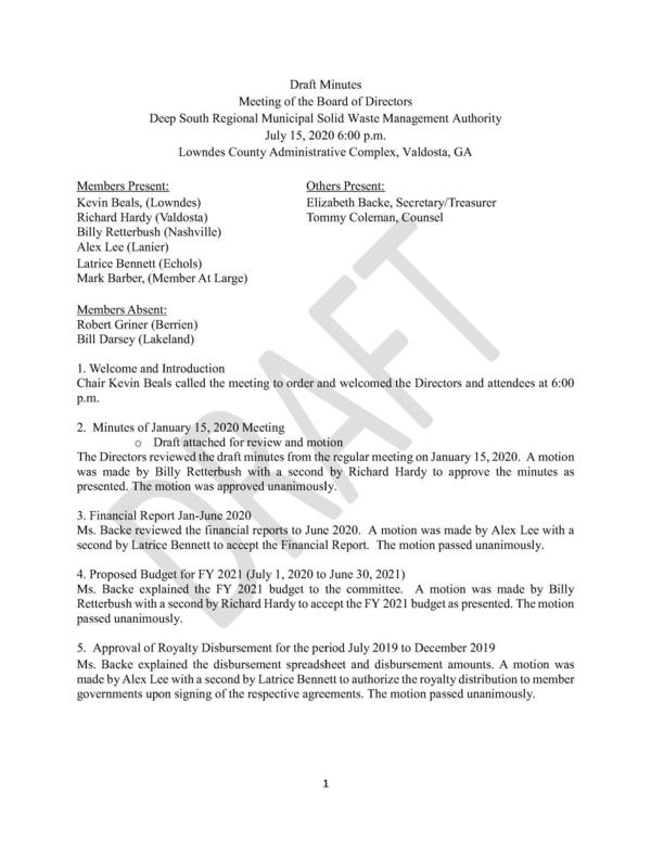 Grinding by Valdosta and Nashville, FInances, Audit, Officers Election DSSWA 2021-01-20