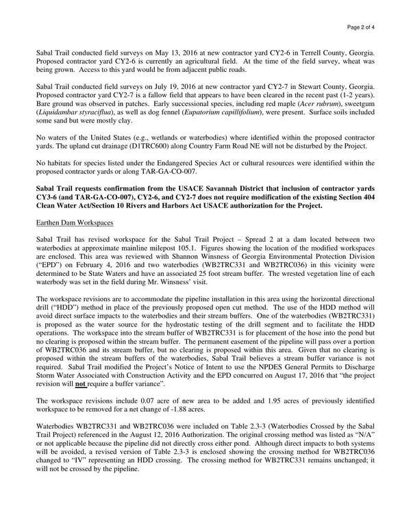 STT to USACE 2016-09-19 Contractor yards and workspace reconfigurations (2 of 4)Contractor Yards and Variances: STT to USACE 2016-09-19 | | Stewart Co. and Hog Creek, Colquitt Co. GA Variances | | 17 October 2016 | |