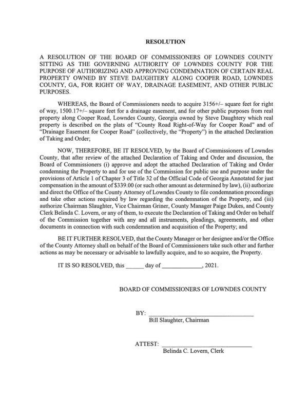 Approve Condemning Right of Way and Drainage Easement for Hightower Road - Cooper Road TSPLOST Paving Project