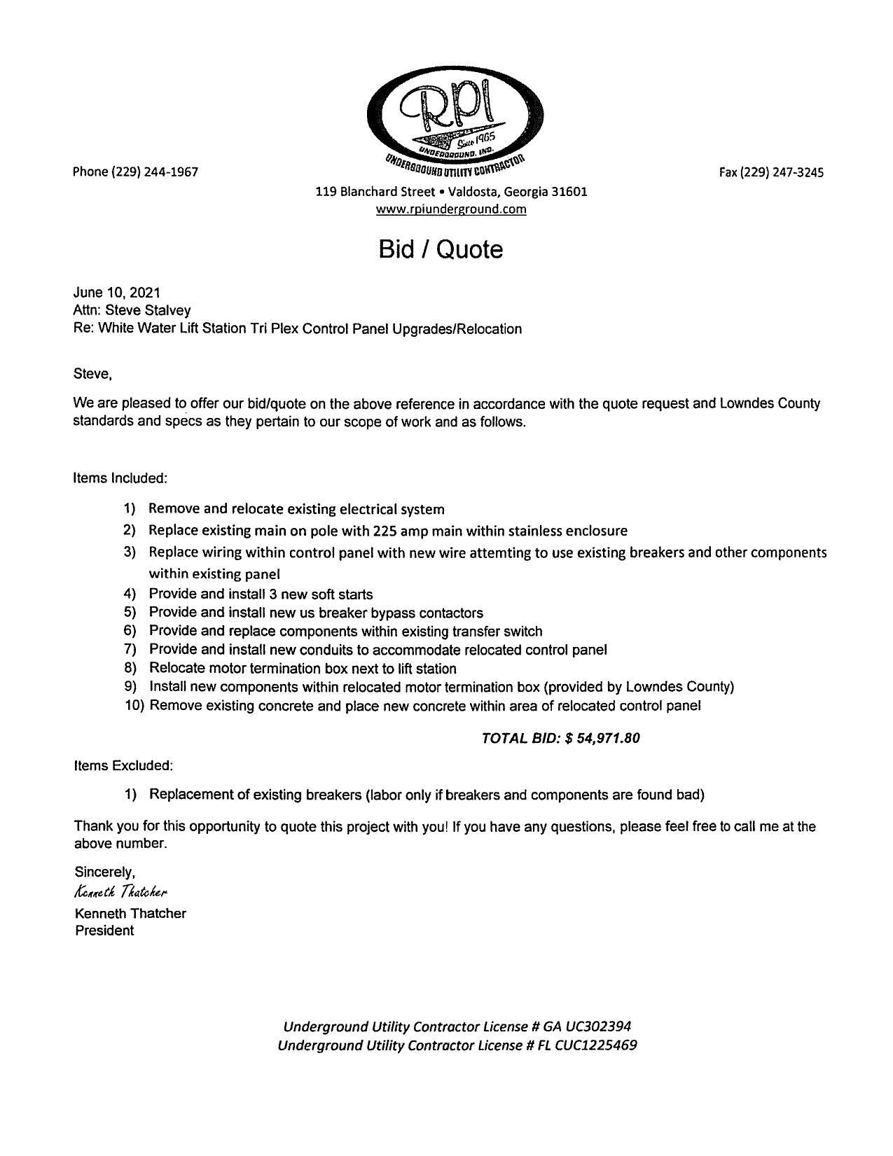 Bid: RPI, $54,971.80