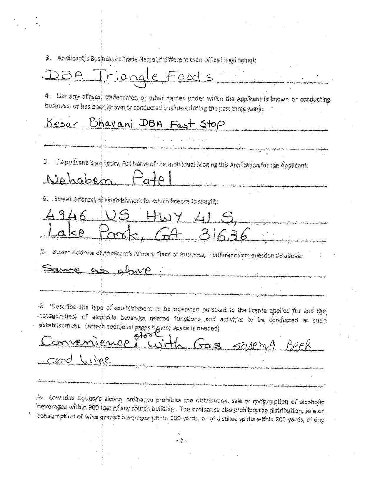 Convenience store with gas, beer, and wineBeer and Wine License - Nehaben Patel of Shree 4946, LLC, DBA Triangle Foods - 4946 US Hwy 41S, Lake Park, GA | | Folsom Bridge and Skipper Bridge USGS gauge funding, beer and wine, Extensive Office Presentation @ LCC | | 25 October 2021 |
