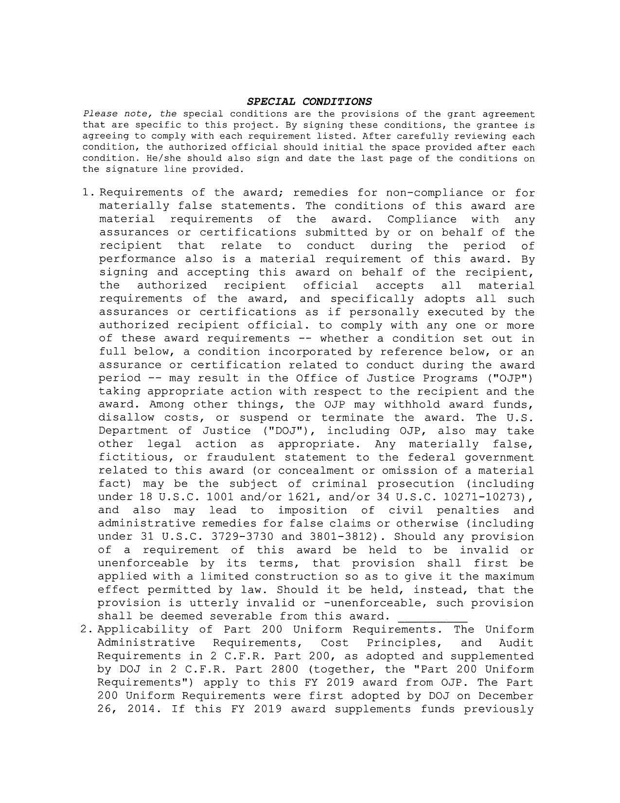 Special conditions