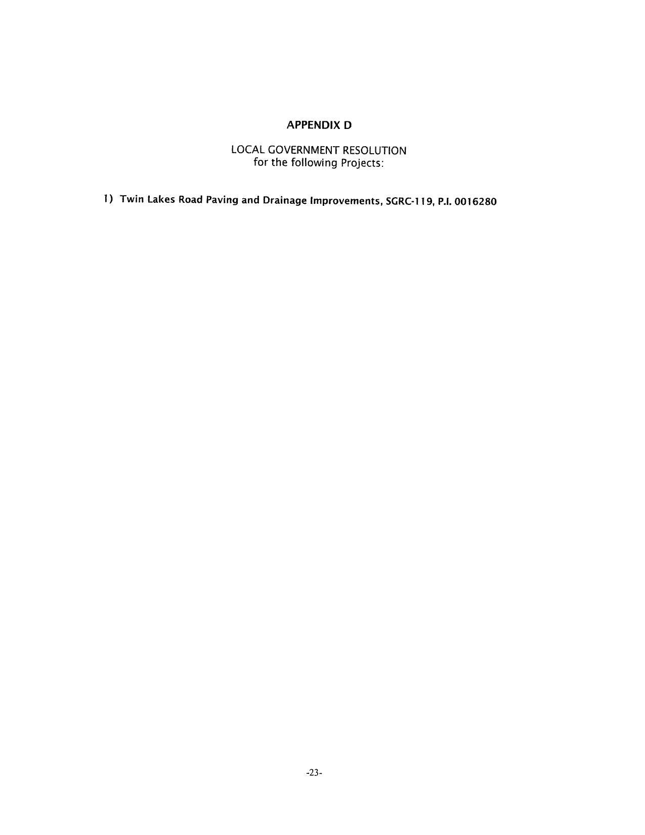 Transportation Improvement Act (TIA) - Twin Lakes Road Local Delivery Agreement