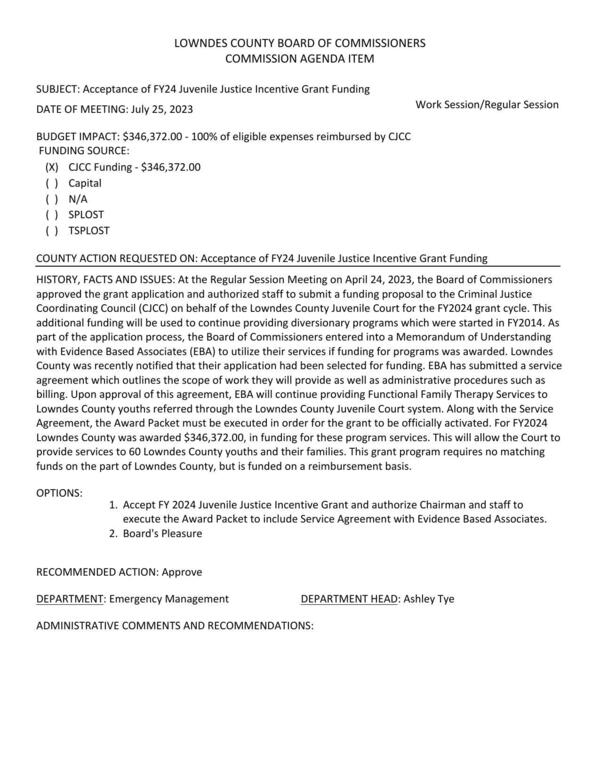 BUDGET IMPACT: $346,372.00 - 100% of eligible expenses reimbursed by CJCC