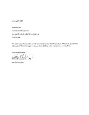 BUDGET IMPACT: N/A; Quarterman Estates Subdivision Phase 4, Section 2 is located in the southern portion of Lowndes County, off of White Water Road and includes 33 lots.