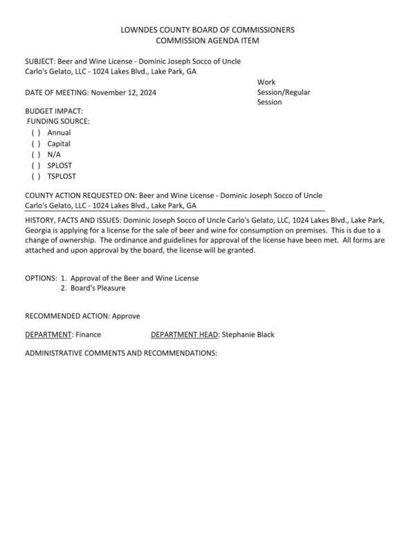 - Agenda: GLPC appointments, ULDC Amendments, 2 rezonings, Street Lighting, Beer and Wine, UPS, infrastructure acceptance, Regional Transit, Georgia Power, VSU, LMIG, Fire @ LCC 2024-11-12.