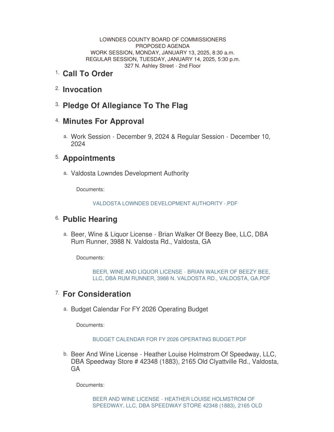 Agenda: Development Authority appointment, VOCA grants, Coleman Road paving, LMIG, Water projects, Windstream @ LCC