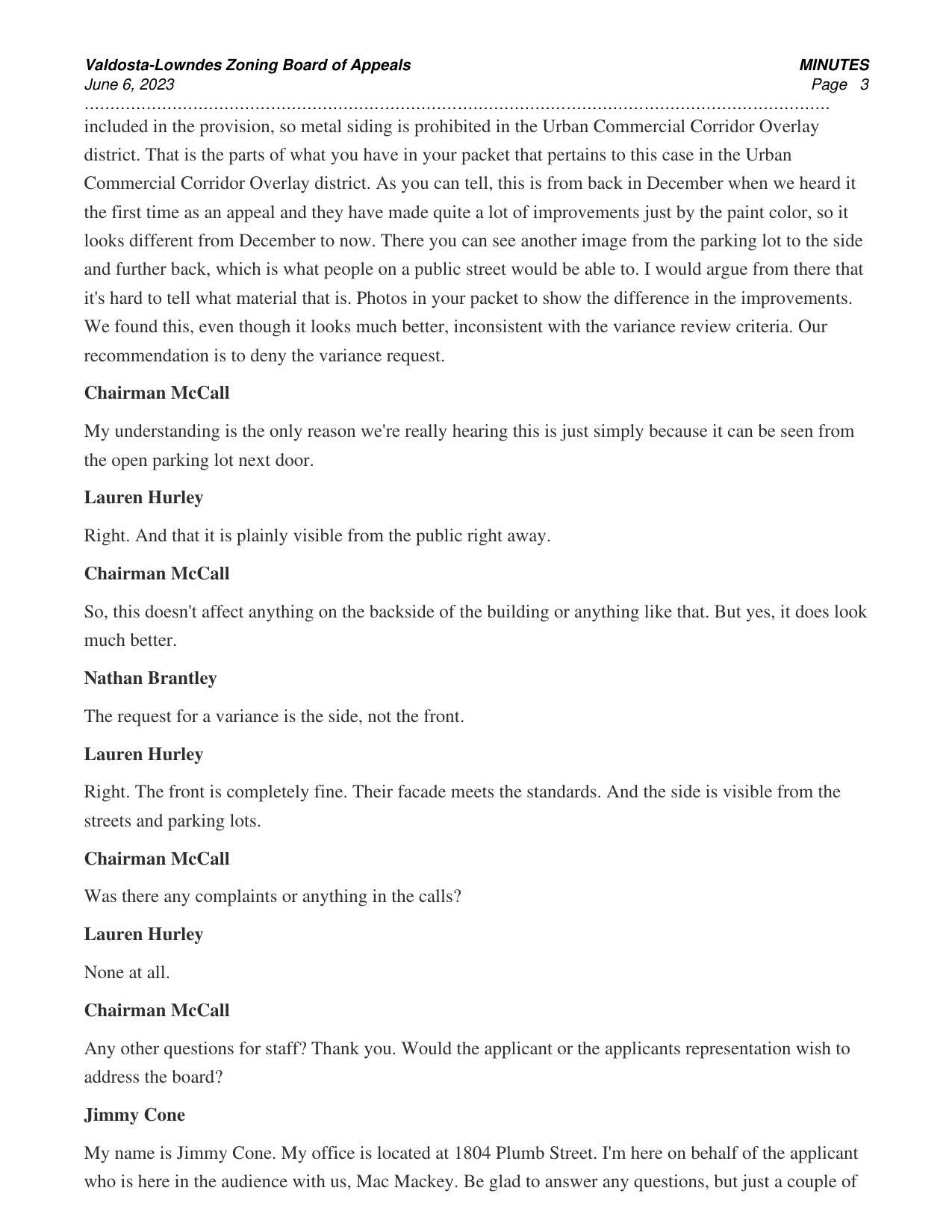 Packet: Valdosta-Lowndes County Board of Appeals, including VAR-2023-13 Arglass